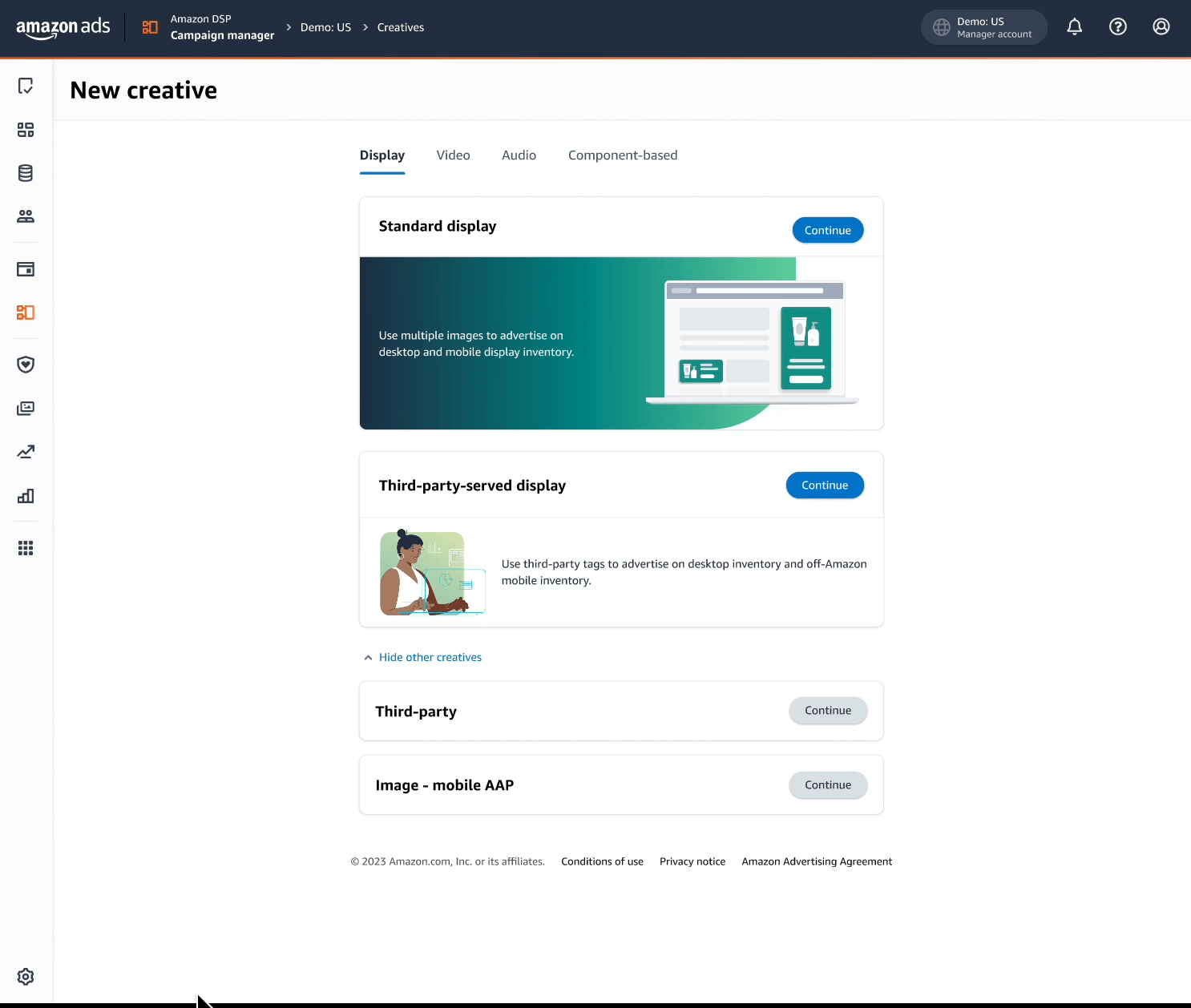 Amazon DSP is a self-service advertising platform that enables brands to buy programmatic ads across Amazon and third-party websites. The Creative Gallery is the first step in campaign creation — where advertisers discover, compare, and select ad formats before building their ads.